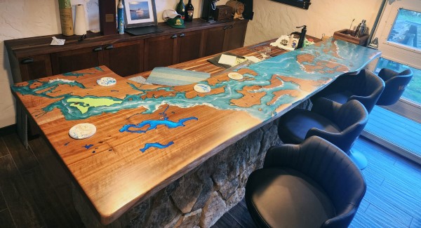 - CNC Topography – CVCF can take an image from a map and carve it into your tabletop. These tables often have sentimental meaning with our clients marking their homes, places of work, and vacation spots along a river or lake. The Mississippi River and Lake Tahoe are two popular bodies of water we have featured in our epoxy tables multiple times