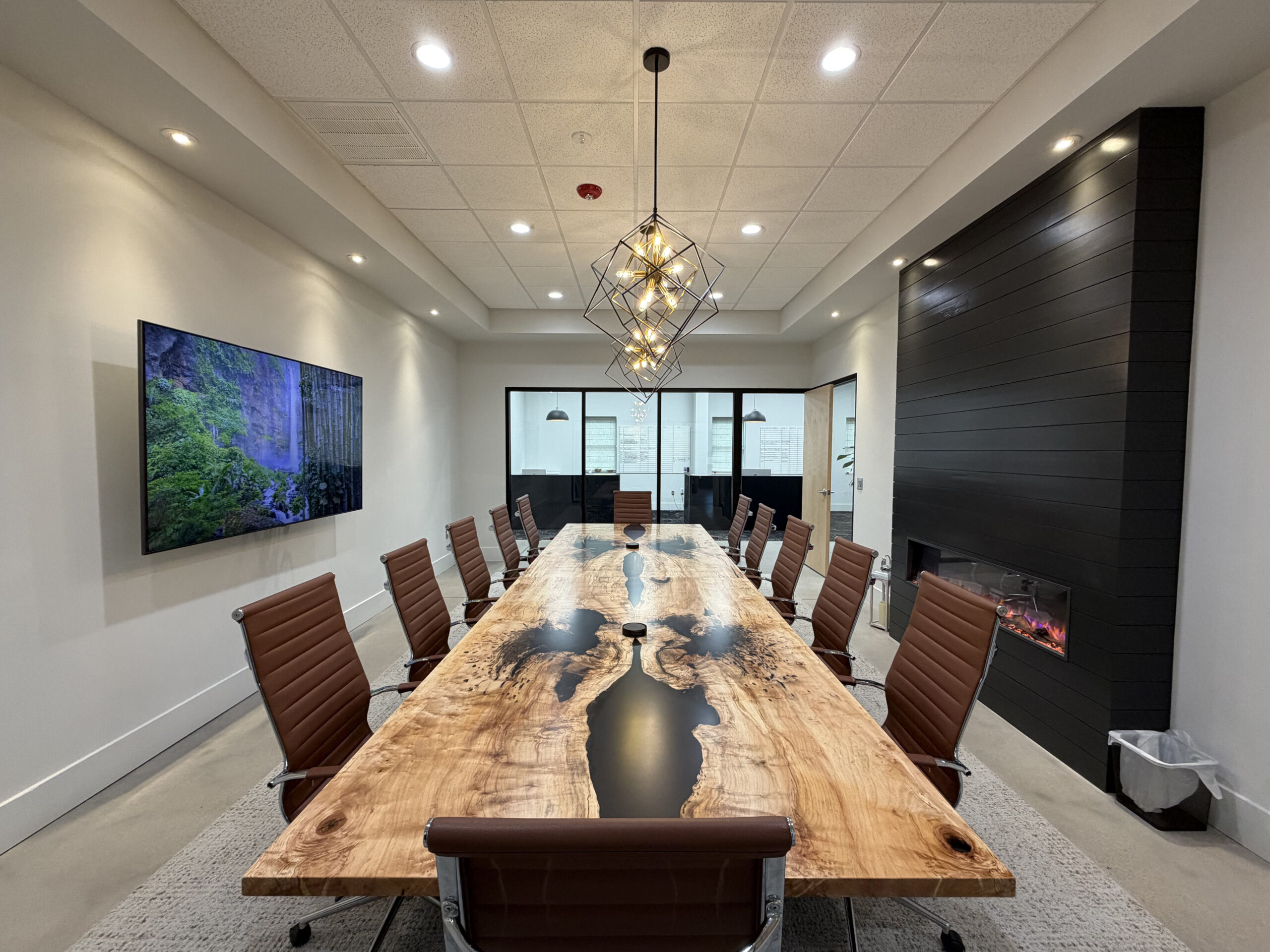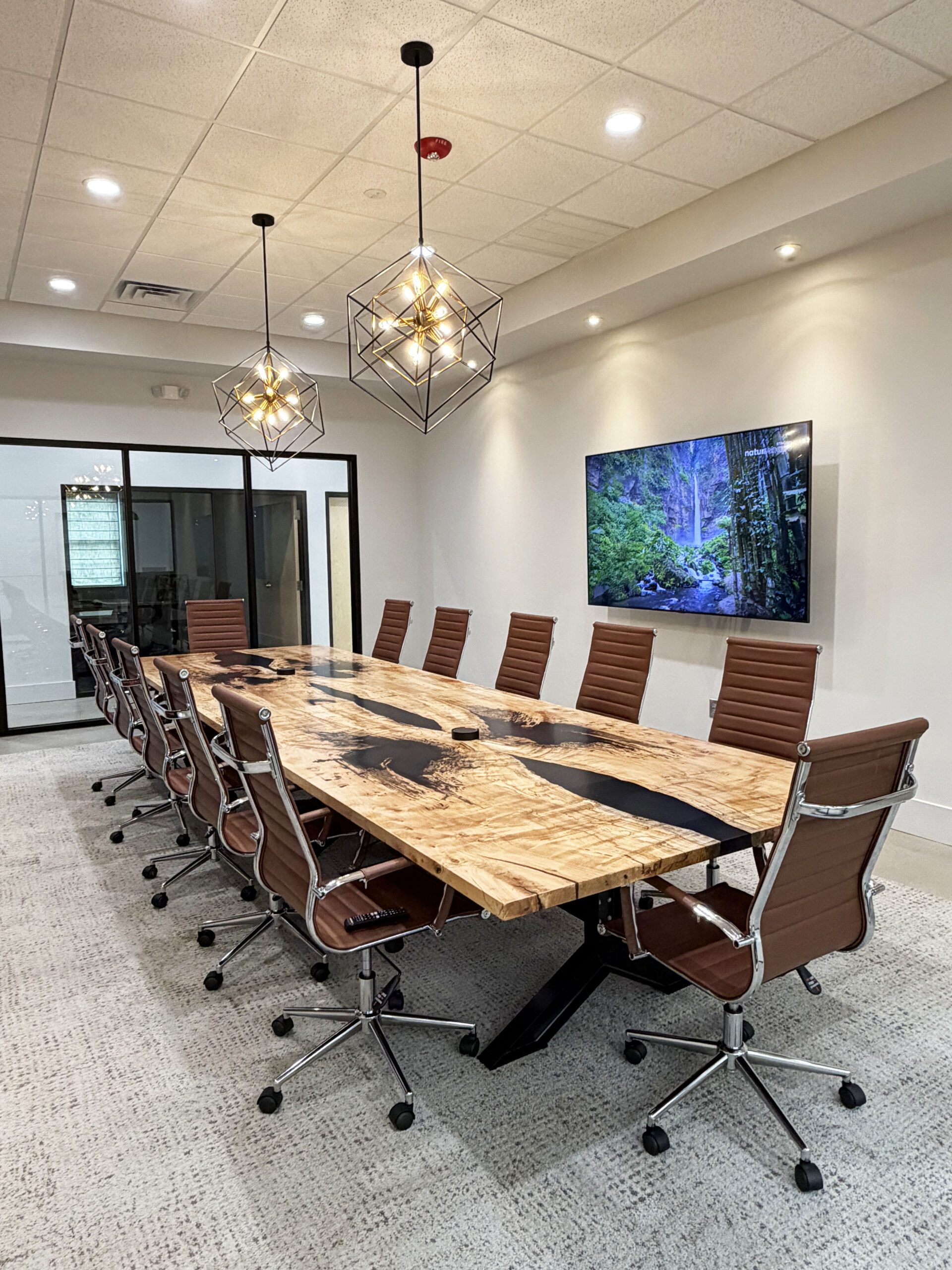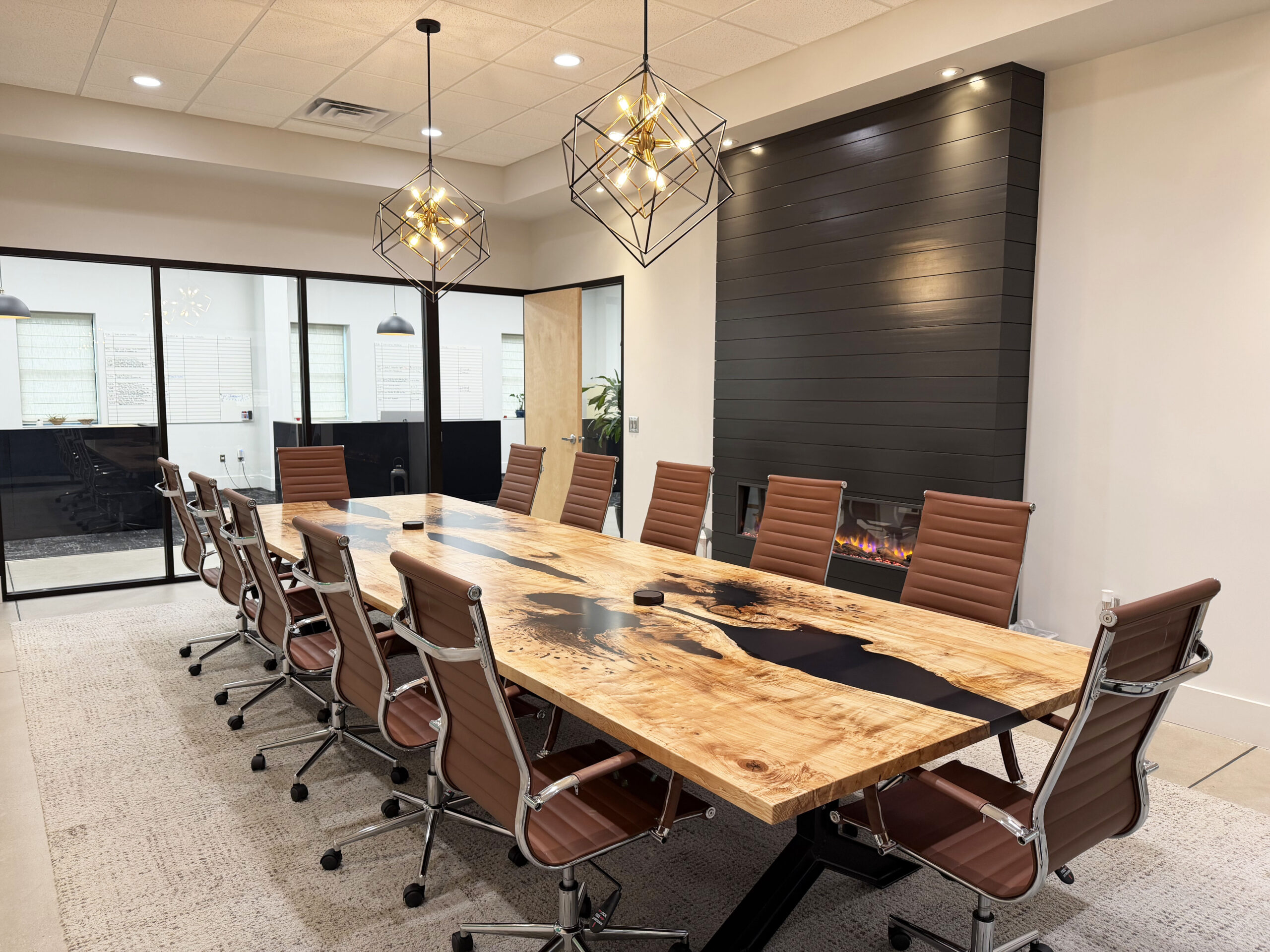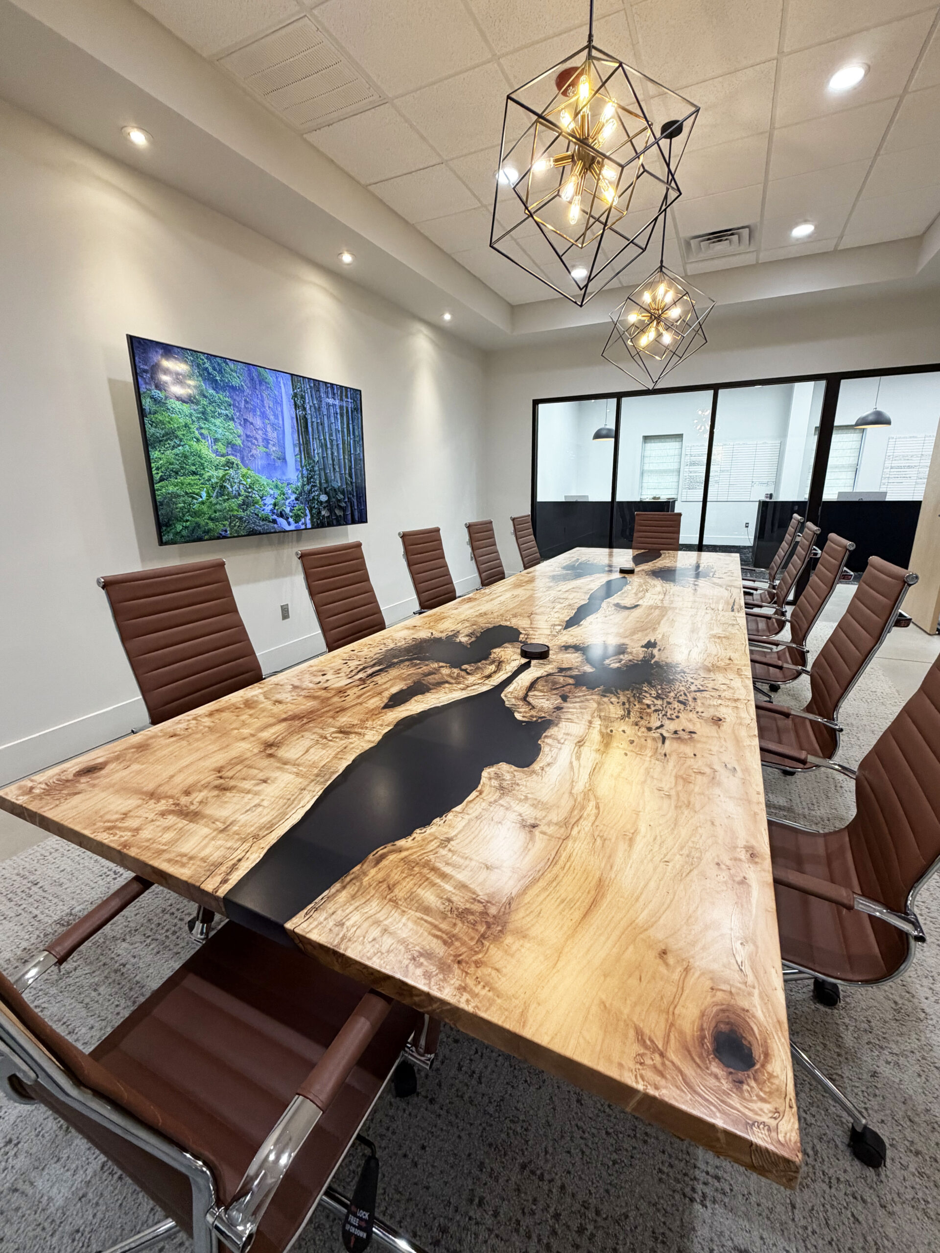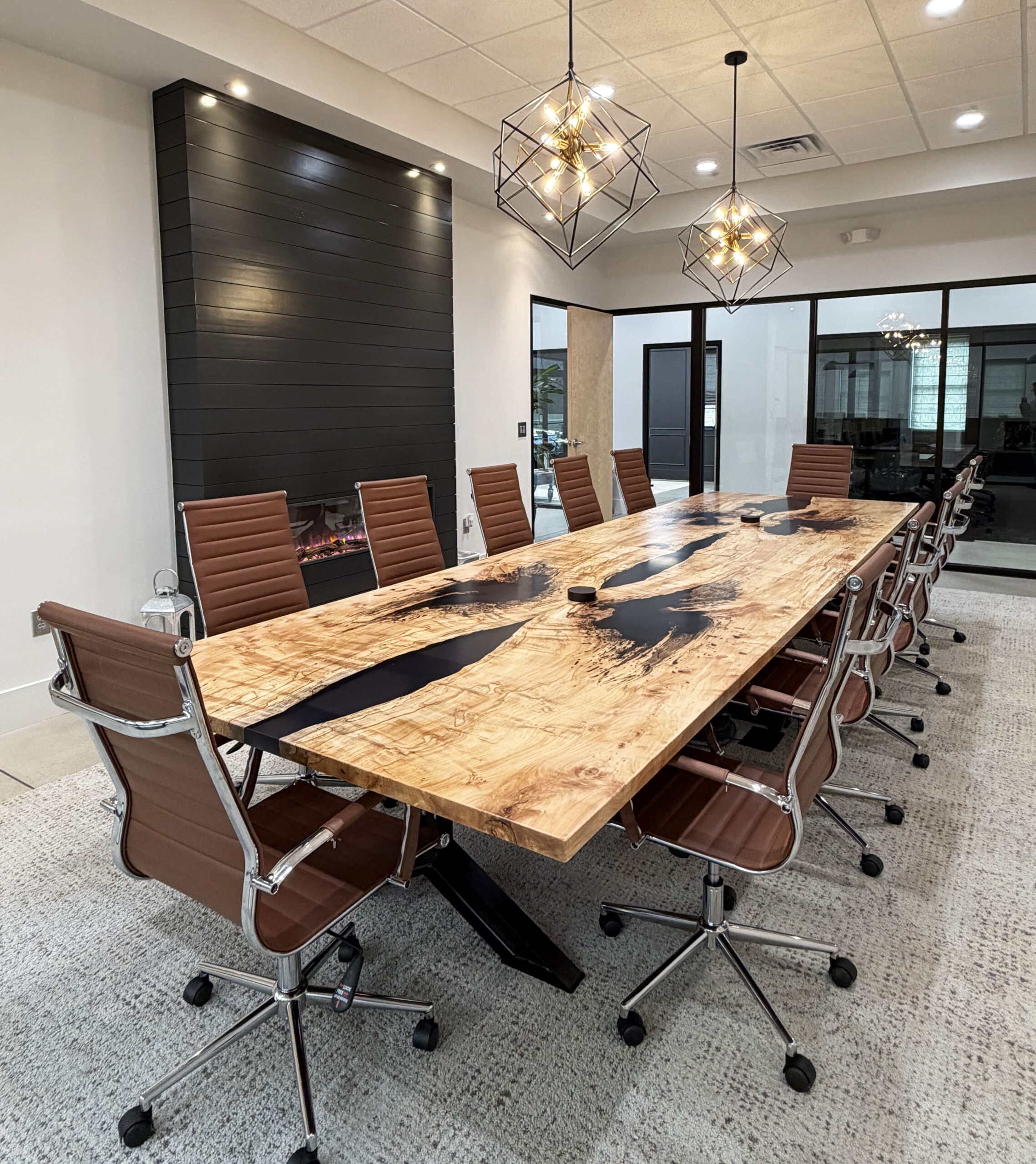 Spalted Maple Conference Table With Black Ink Style Resin